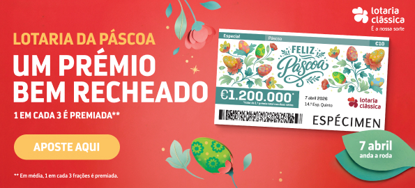 lotaria clássica Próxima extração 07/04/2026 € 1.200.000 Última extração 31/03/2026 1º Prémio 59444 Jogar