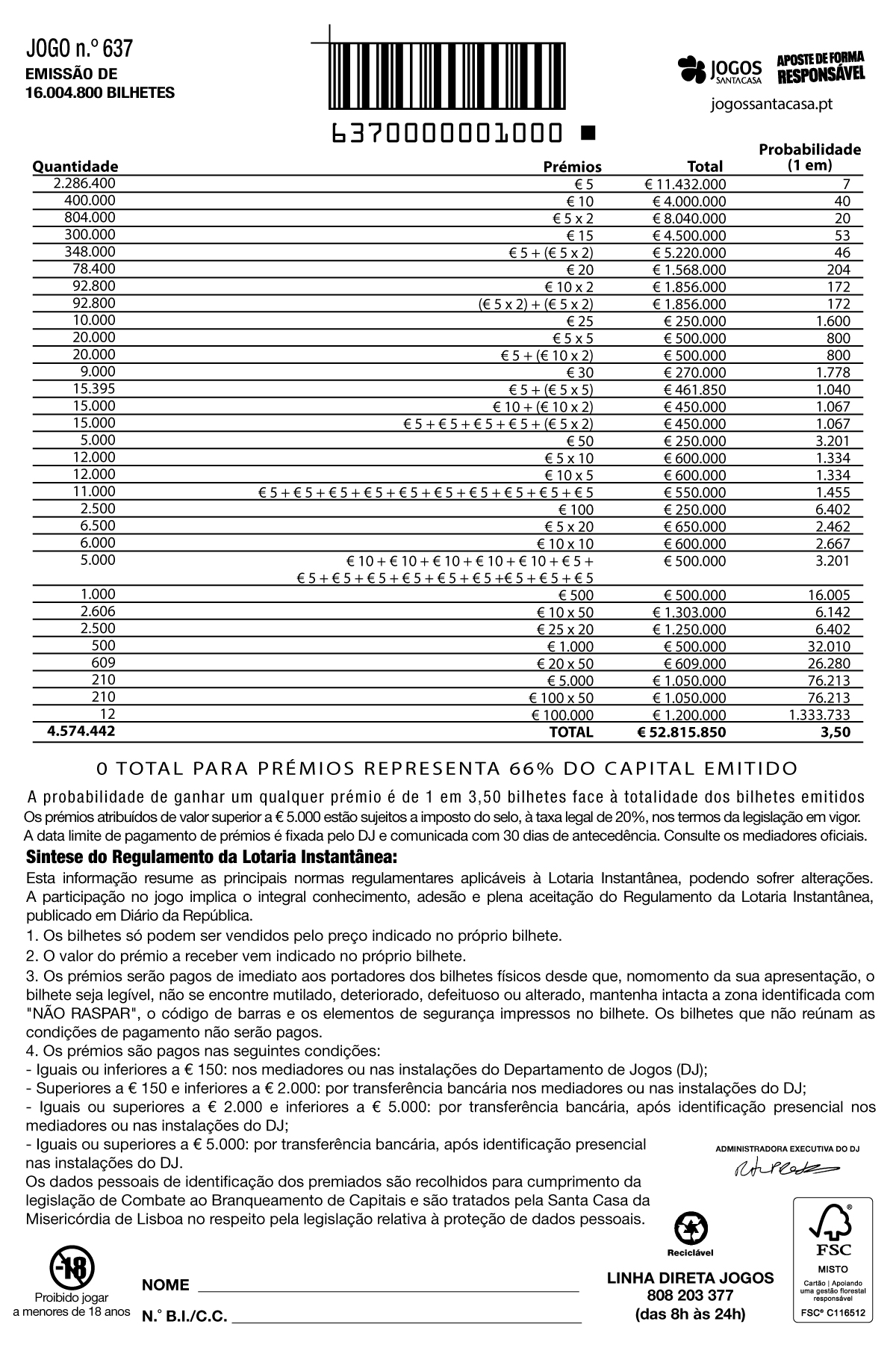 50x) e ganha a quantia correspondente a 2, 5, 10, 20 ou 50 vezes o valor do