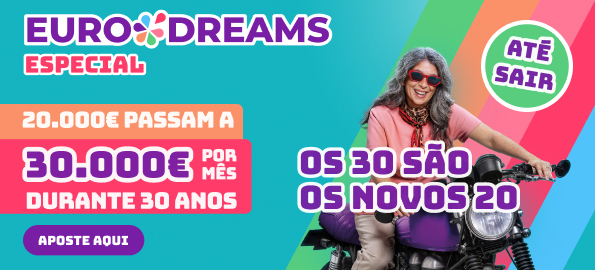 Próximo sorteio Quinta-feira € 30.000/mês x 30 anos